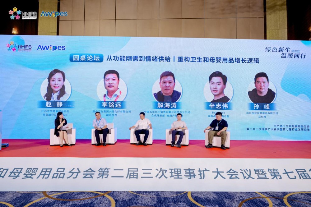 Zhao Jing, uitvoerend vice-president en secretaris-generaal van de Jiangsu Pregnancy, Infant and Children's Products Association, zat de themadiscussie voor: "Van functionele rigide vraag naar emotioneel aanbod丨Reconstructie van de groeilogica van hygiëne en moeder- en babyproducten". Vertegenwoordigers van speciale vezels en merken van hygiëne- en moeder- en babyproducten, zoals Xie Haitao, senior strategisch inkoopdirecteur van Babycare, Ma Chuncheng, verkoopdirecteur van Tangshan Sanyou Group Xingda Chemical Fiber Co., Ltd., en Sun Feng, algemeen directeur van Shandong Zhuobi Maternal and Infant Products Co., Ltd., deelden hun interactieve ervaringen, gezondheid en comfort, groene milieubescherming, functionele voordelen en kostenprestaties.