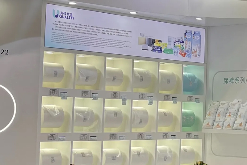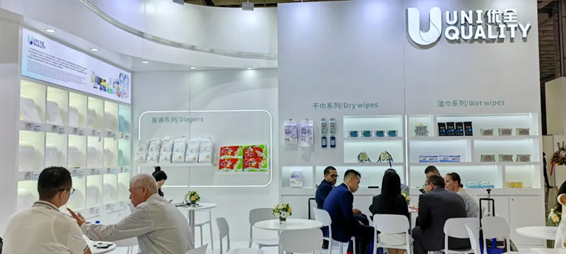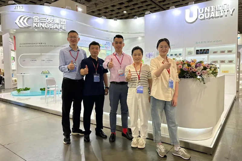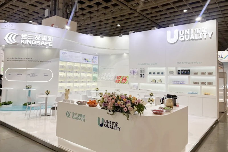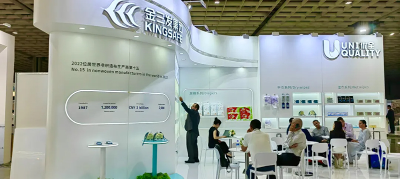 De producten die worden tentoongesteld door Kingsafe Group & Youquan Care omvatten vochtige doekjes, katoenen doekjes, luiers, doorspoelbaar nat toiletpapier, spunlace non-wovens, spunmelt non-wovens en non-wovens met hete lucht en andere gediversifieerde producten.